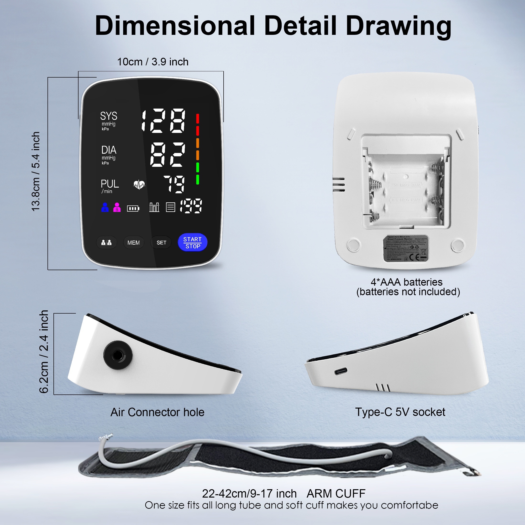 Ensure accurate and reliable blood pressure readings at home with the NEW LED High-End Curved Screen Home Precision Sphygmomanometer. Designed for easy use, this automatic upper arm blood pressure monitor features a sleek curved LED screen, providing clear and precise measurements at a glance. With memory storage for up to 2x199 readings, it’s perfect for tracking your health over time. The adjustable cuff fits arm sizes from 22.1 to 43.18 cm, ensuring comfort and accuracy for a wide range of users.
